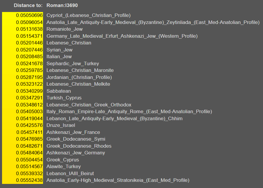 Italians got a different admixture source, that converges on some level with the Jews, but overall historically distinct, formed from convulsion of separate population history process. So although parts of Jews are from the Eastern Mediterranean side, it is not an offshoot variation of it, entirely, where one could say it is an explanatory adequate. We can find samples within the Eastern Mediterranean (probably mainly from an East Mediterranean-shifted Anatolian) that look almost Jewish-like, but that would be either that they were archaic of European Jew or most likely coincidental.