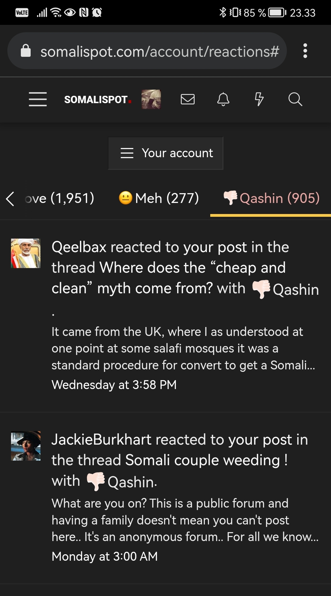 Ileen she doesn't even read what you say and messes up your ratings. This is just more sugar to the tea. Keep going, this is real entertaining.We don't even interact enough. I'm not gonna qashin you 362 times. Use your maskax, doqon yahow. Majority of my qashins are random.