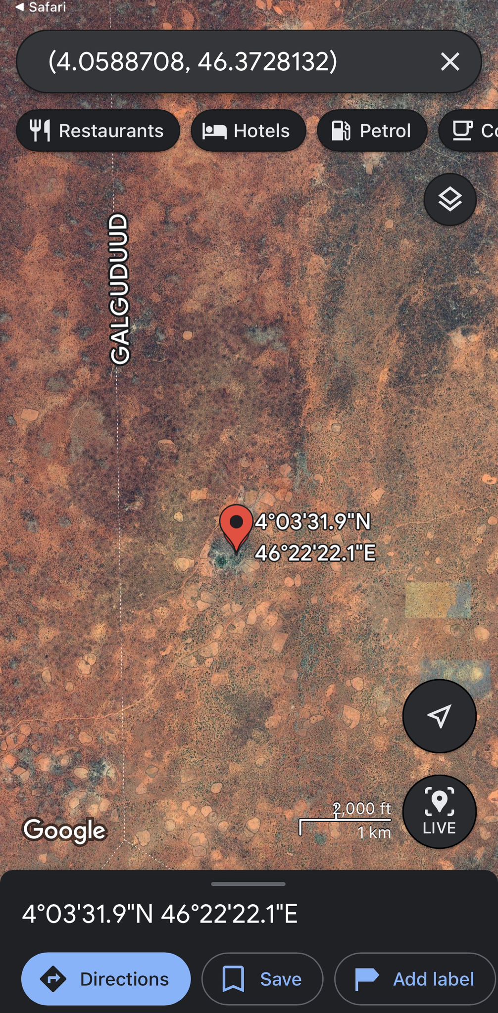 No I updated it.That coordinate gave me somewhere still in Hiraan south of moqokori. As I said there isn’t a single XL in Galgaduud.