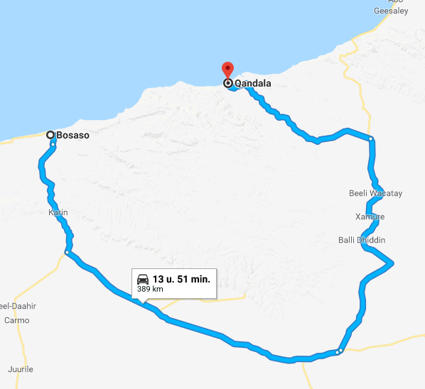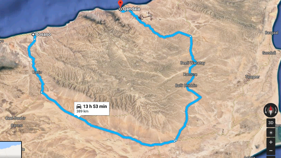 Specially the road from Qandala to Bosaso is super depressing. Look at the detour people have to make to reach a town that's only at 80km distance.