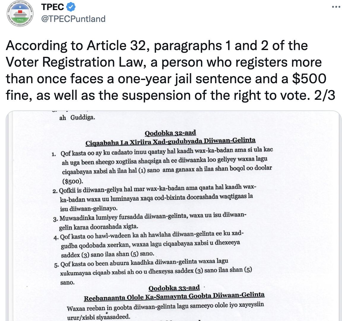Apparently a few people, who initially registered, and possibly voted in Qardho, tried to do it again in Bosaso.