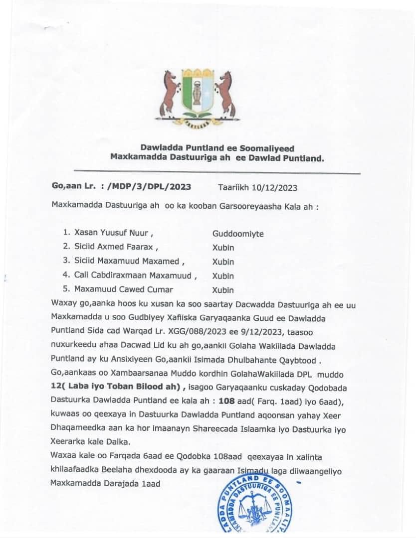 Faroole junior, Asad Diyano, and Hassan Shire Abgaal announce they will not take part in the presidential election if the resolution and vetting committee nominated by Deni oversees the parliamentary selection process.