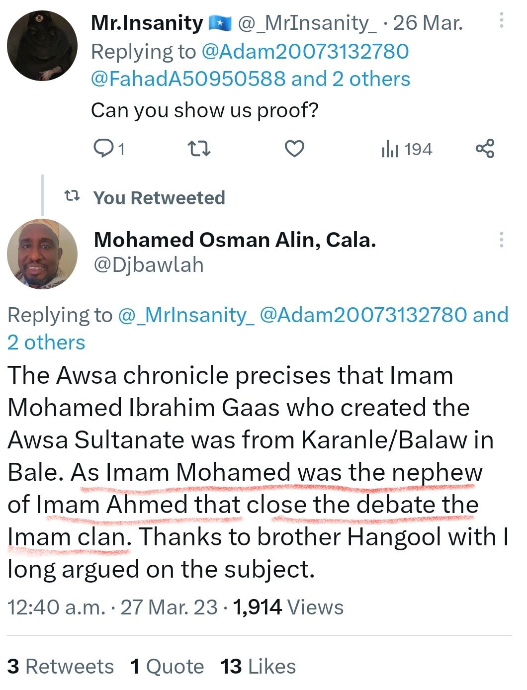 Exactly, it’s to show you that you and I have no say in this. Millions of people accros the globe are playing it and getting taught indirectly. Social media is doing its job. The software developers have accessed the relevant sources and knew Amir Nur was Karanle and a close relative Imam Ahmed . There are no hararge traditions of Amir Nur they are MX Somali traditions which is as real as their spirits Yaxye and Moorif kkkk. Also, Amir Nur has a brother and father mentioned in the Futuh which MX traditions do not mention. They don't know his family it is clear Hotepism whereas the Karanle have no relations to the studies done on them the books say Karanle not the other way around.using video games now?![]()