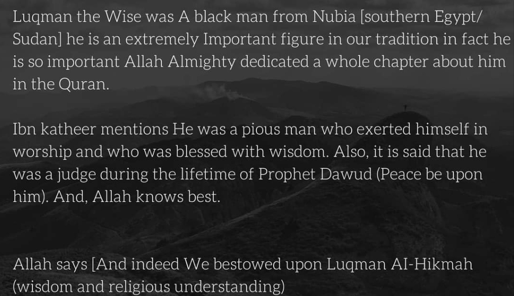 Prophet Luqman who has a whole surah named after in the Quran, was Nubian 🙃