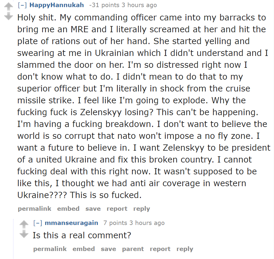 I think it's time to give up on this "Russia is losing" narrative. People can read the posts from the Reddit volunteers. It's pretty clear the "Russia is losing" narrative is fake and I think the best strategy at this point for the pro-Ukraine side is to come up with a new narrative- unless you only want to convince the uninformed and clueless.