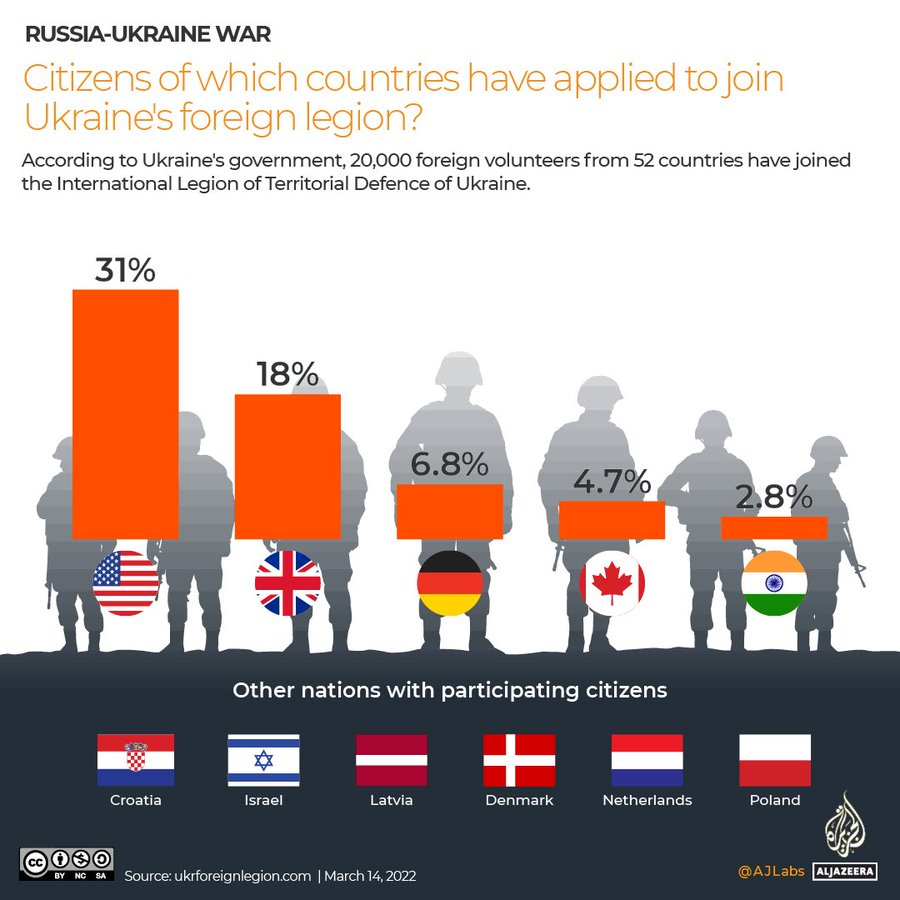 I would love to know which foreign country has the most volunteer fighters sent to ukraine