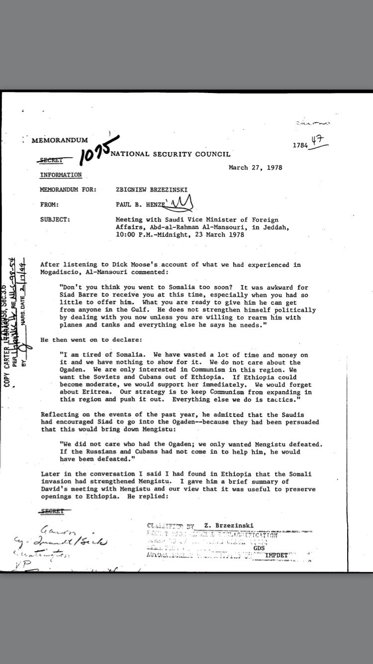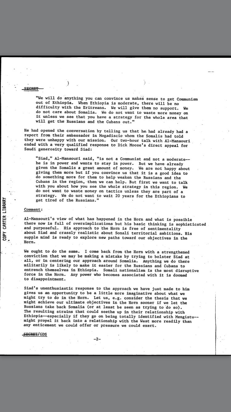 Saudi's & American's encouraged Barre to go to war with Ethiopia