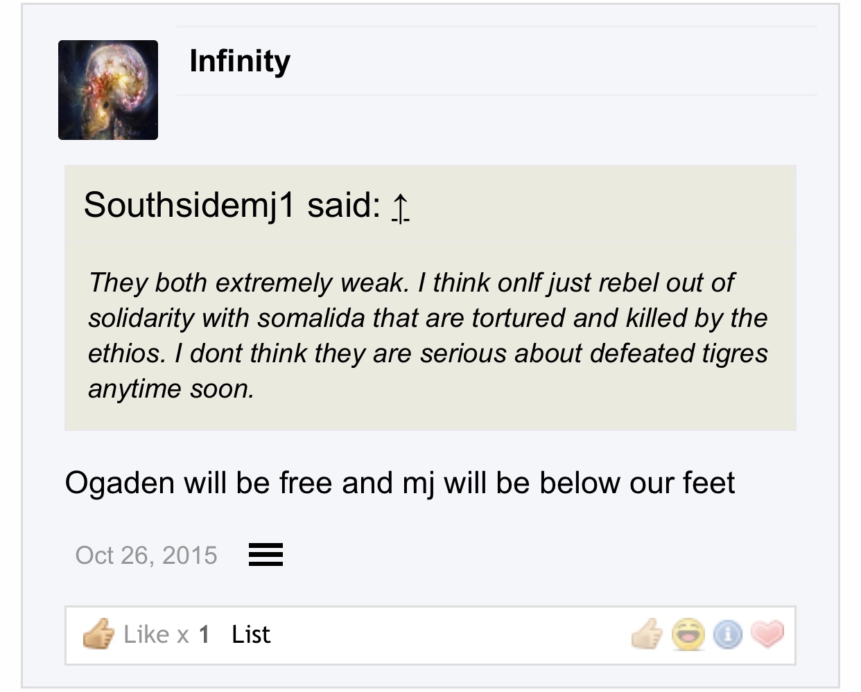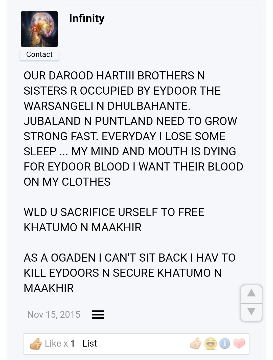 who were you trolling? You were defending Ogaden with 1 comment and just leaving the thread afterwards you never returned to “troll” these imaginary people you speak ofI am not him saaxib believe whatever u wantOh we totally believe you Kezirawho were you trolling? You were defending Ogaden with 1 comment and just leaving the thread afterwards you never returned to “troll” these imaginary people you speak of