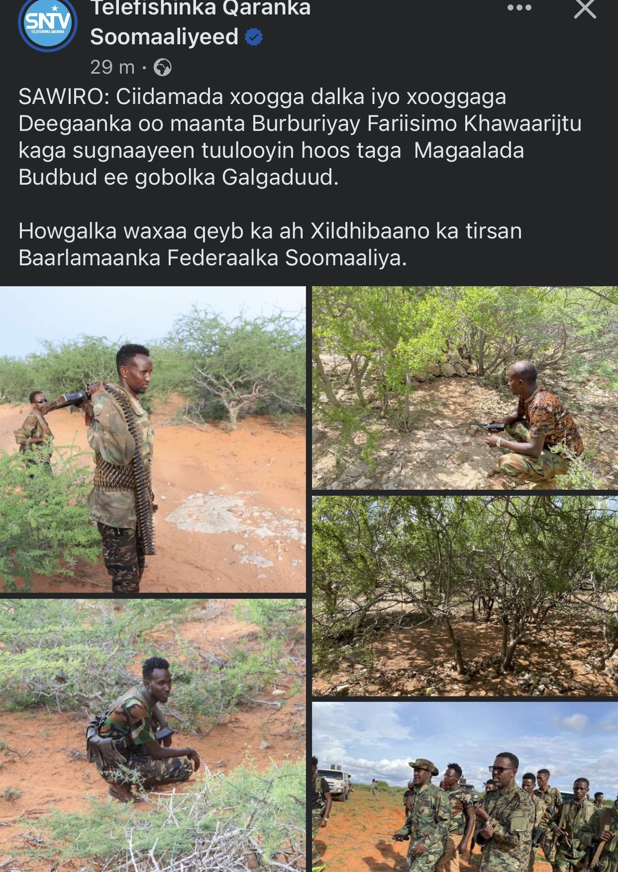 Jubbaland is thickly forested. It is not the sameNo excuses for JL and KG anymoreGalgaduud Bari has an abundance of water, farms/food and yet Shabaab is being destroyed in the countryside by the SNA, no foreign help.
