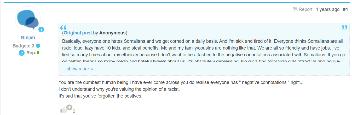 That negro was begging for ajanabi so bad ya alla i felt shared embarrassment if all these niggas thought you wuz so ugly go f*ck some miskiin cabdi kalassome somalis are such drama baboons chimping wayy to much over nothing calm down we are neither the worst or the best and the country is doing fine