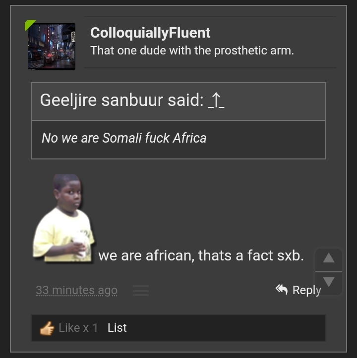 He would rather we say were african because hes such a bumsuck he wants to make us look black by any means when we have already debunked his argument many times he is a truly shameless dog #SomaliUncleRuckusSaying I'm African just strips away my identity to a black guy from that continent. It ignores that fact that I am muslim, somali and cushitic.