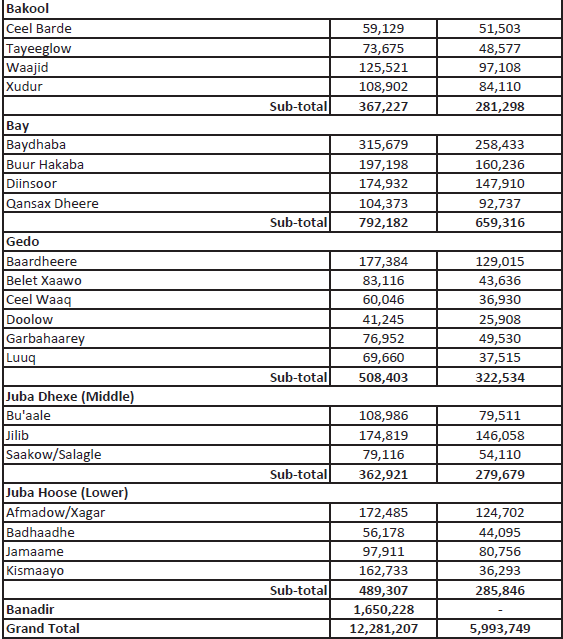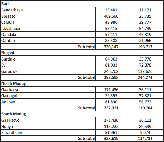 - Ceel Afwayn (99k)+ Half Ceerigaabo (102k): 201k in Sanaag.