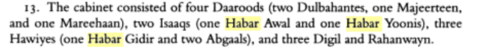 Most Somalis assumed that the prime minister would be drawn from one of the more powerful sub-clans belonging to either the Habar Awal clan of President Egal of Somaliland or the Majerten clan of Puntland's Colonel Abdullahi Yusuf.