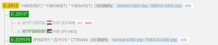 It'd be interesting if he continues to be basal at E-Z813. In such a case there'd be two basal E-Z813 samples in the same general vicinity: Sinai and Nablus/Palestine. Along with the fleshed out subclades, E-Y17859 and E-Z21175, which have upstream samples in the Sinai, NW Saudi Arabia and Kuwait that run parallel to the Cushitic branches.