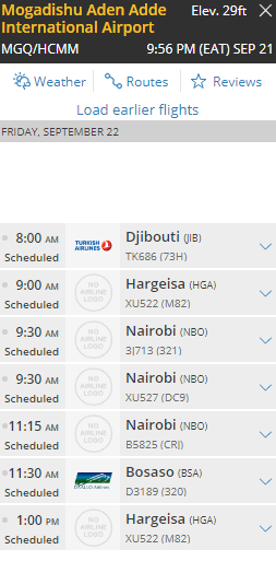 Firstly, I found out that hargeisa airport has now overtaken mogadishu airport in terms of passenger flights( Obviously mogadishu airport has more military and UN flights). It has more arrivals and departures (for passenger flights) than mogadishu and more international airlines fly there. See below for mogadishu, hargeisa and bosaso comparison in terms of arrivals