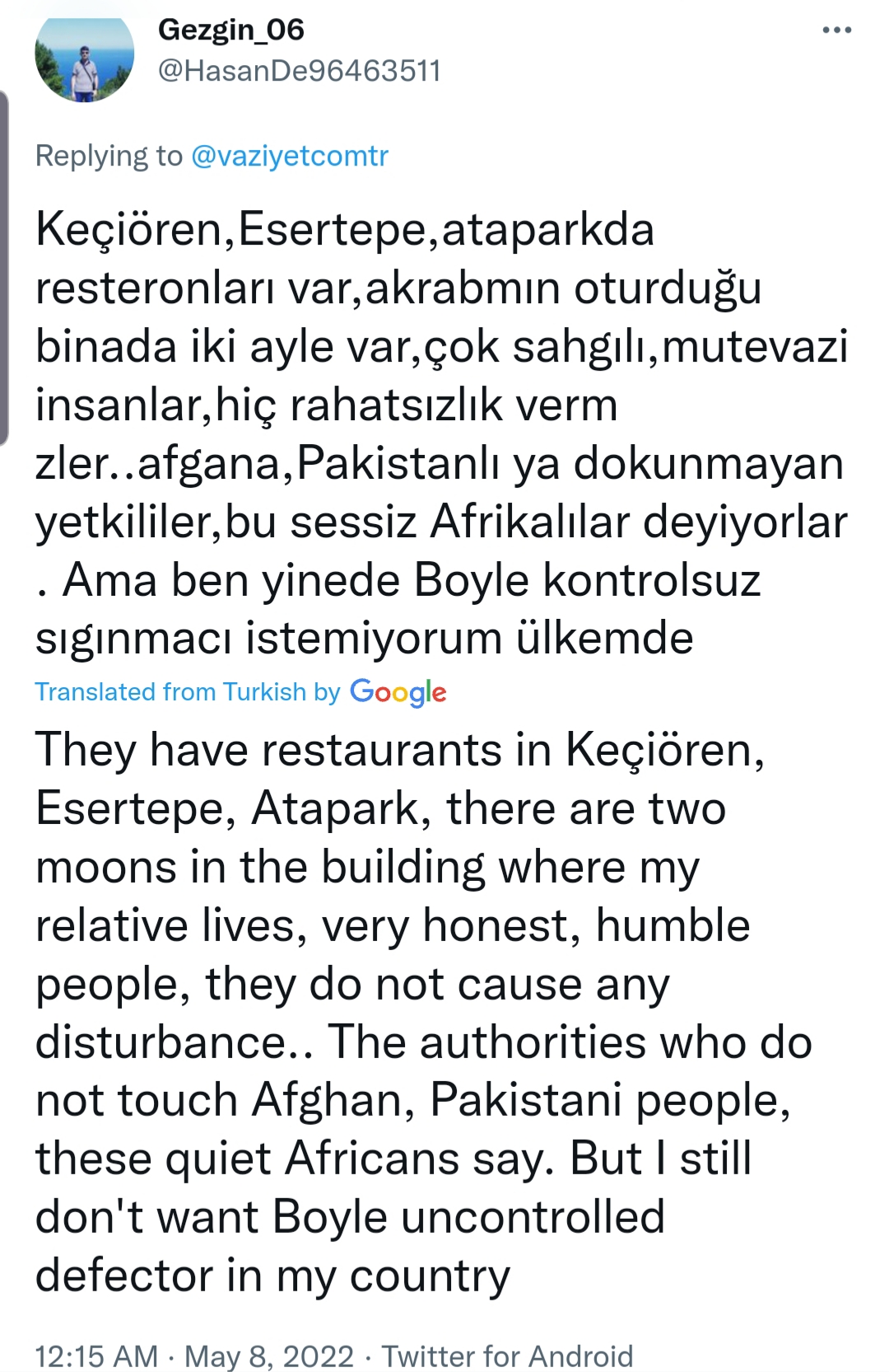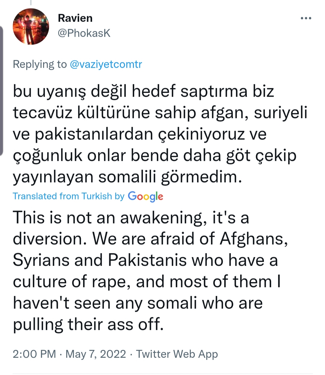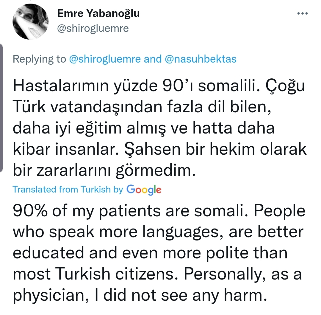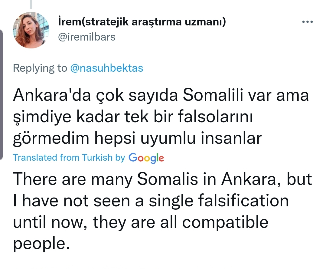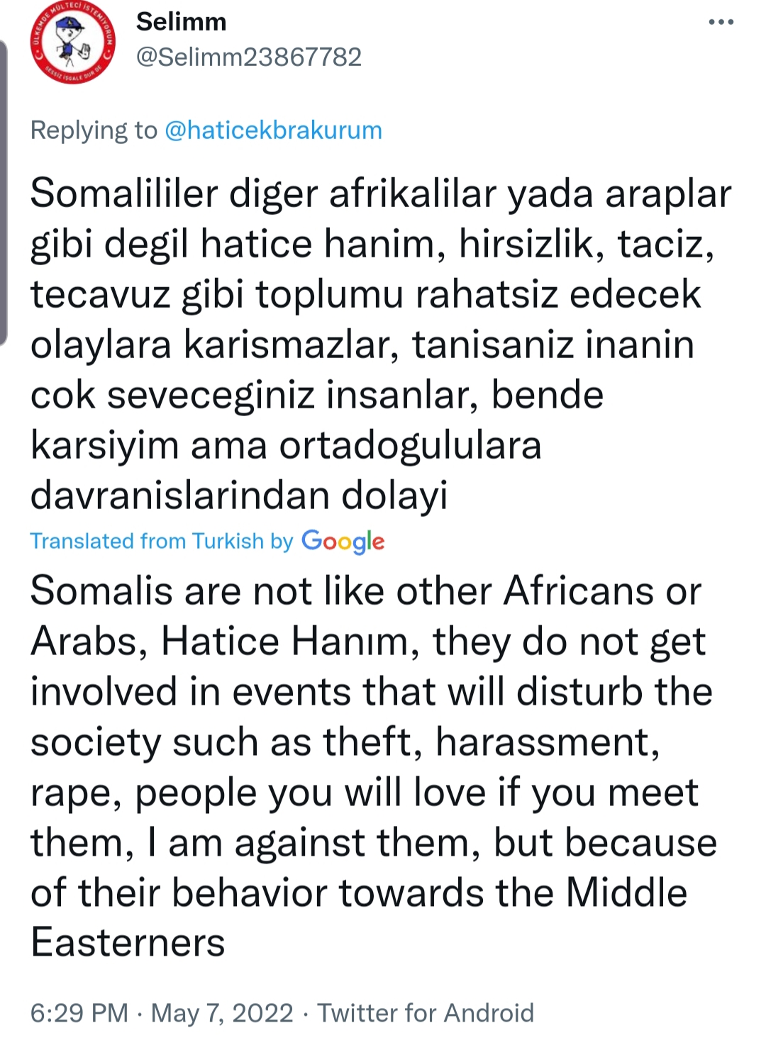 Somalis are overall viewed positively in Turkey. Much of the vitriol is aimed at Syrians, Afghans etc but Somalis occasionally get caught up in the general anti immigration sentiment.