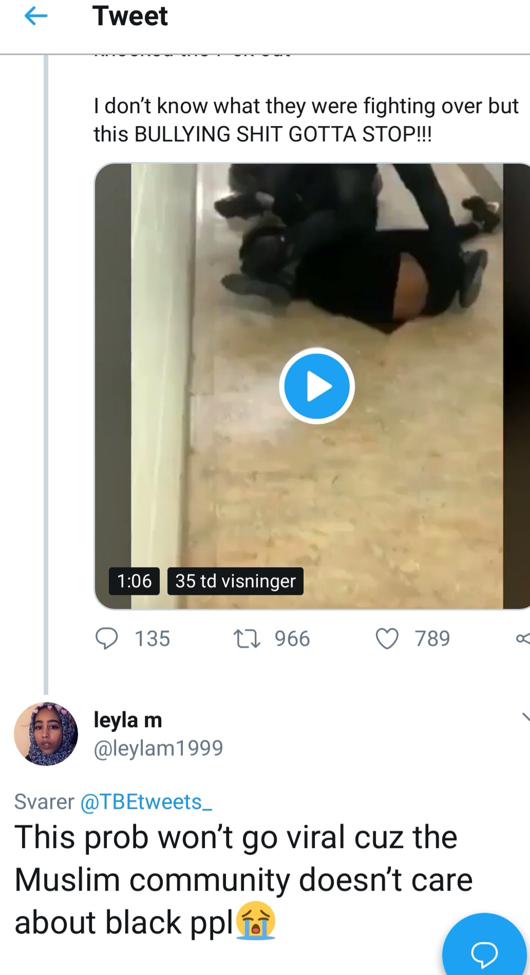 Wtf is she on about? It's the same black people that are beating up your fellow Somali fgs & yet she still finds a way to beg it to MadowsTwitter BLM Xalimo response to jamaican gangs beat up of her colleague.