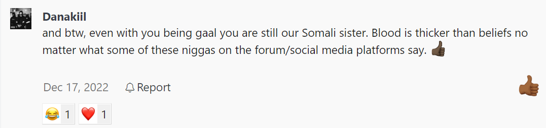 You out here showing love to a "Somali sister" in this ss, some might even say you were flat out twerkin for this individual. To then calling another Somali sister a " Super Saiyan *****).Super sayain dh1lo![]()
