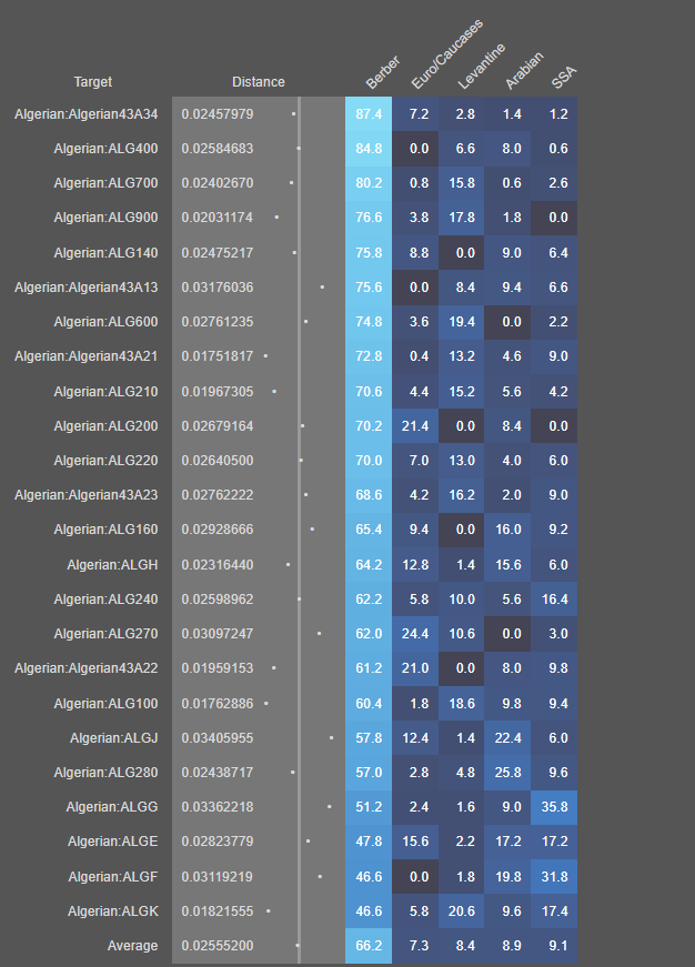 38% African and the rest MENA. We also have to remember even the Natufians & Neolithic Anatolians had IBM ancestry. We can never truly get an accurate West Eurasian/African percentage because it varies depending on the model and as what one defines as West Eurasian.