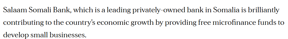 It makes Somalia extremely unique. Unlike exploitative capitalism in Western and other societies, Somali banks, businesses give back to their communities.