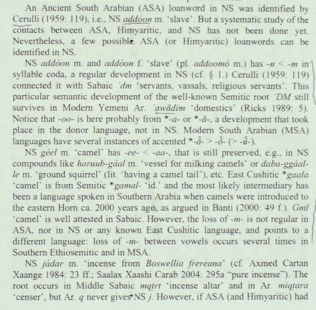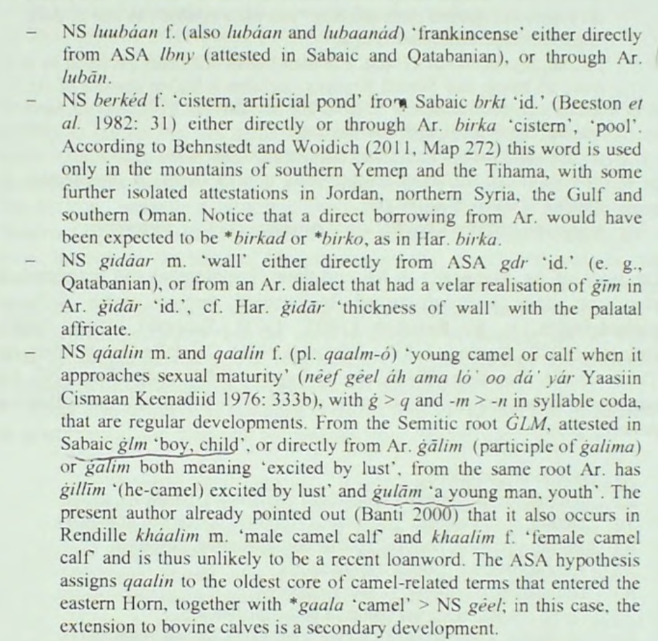 Now, here are some examples of south Arabian words present in the Somali language that are not present in any other non Semitic language (excluding Afar)