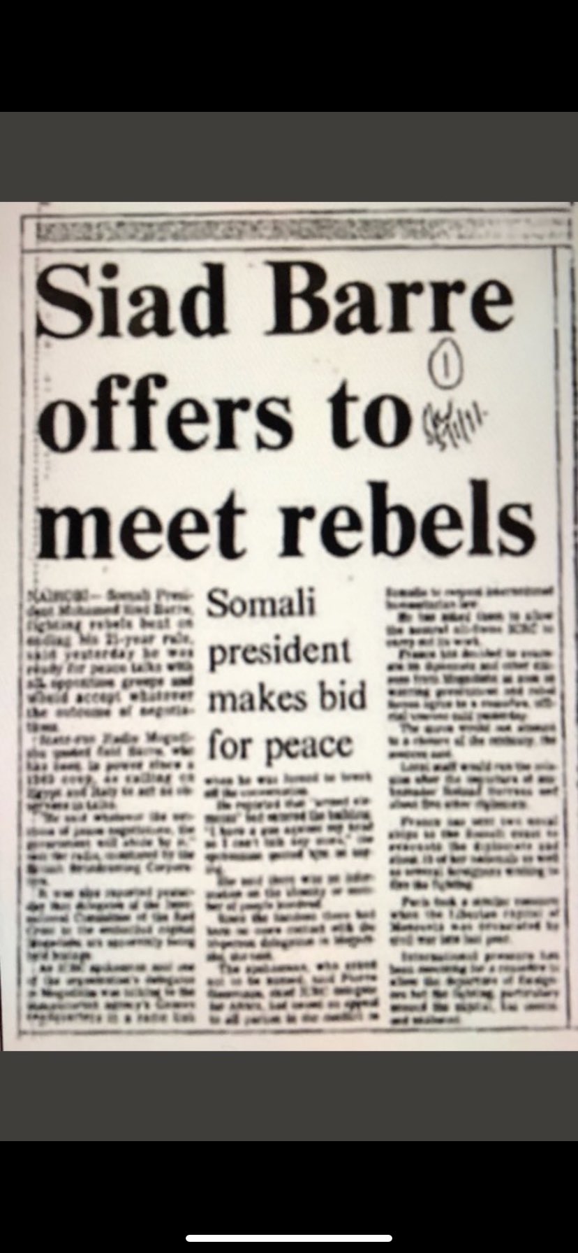 Below is Letter a written to Siyaad Barre by a group of former freedom fighters and politicians such as AUN Aadan Cadde calling for the end of Siyaad Barre regime and the establishment of a democratic regime in Somalia. Unfortunately, not only did Siyaad Barre ignore the last chance for peace in Somalia but went on to imprison those who signed the letter.