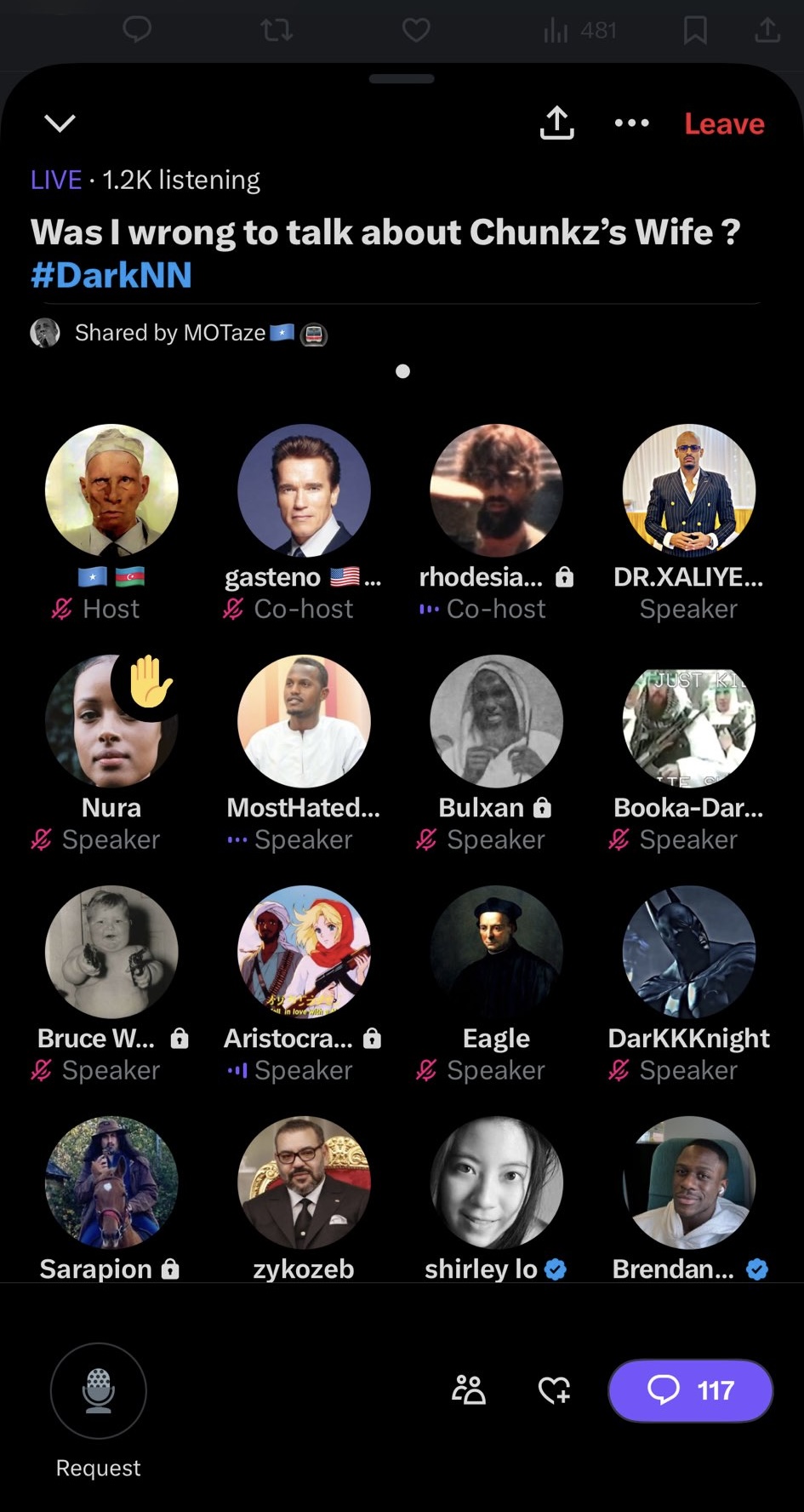 Somali men hold a space with over 1k listeners insulting chunkz’s wife and Somali women