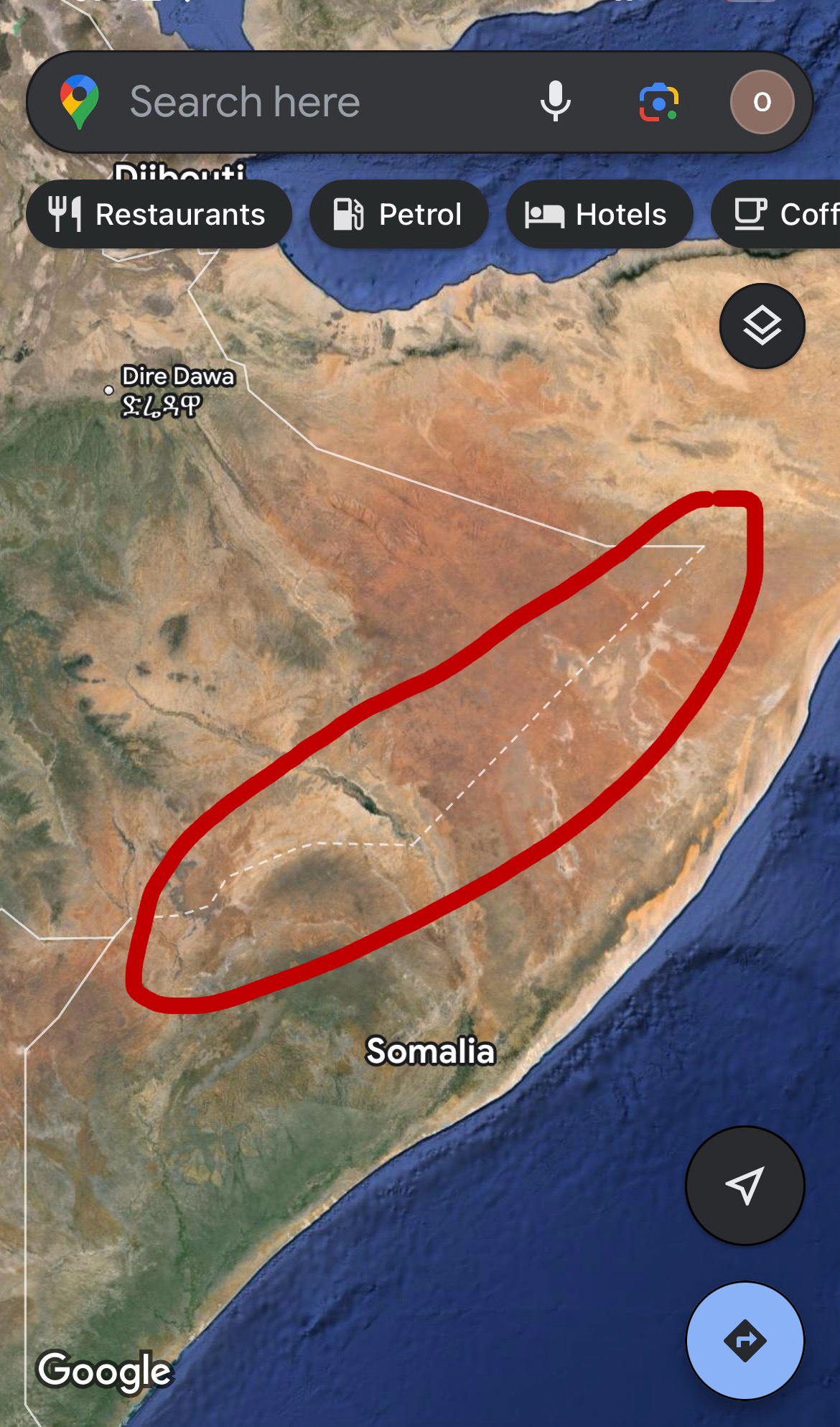 Why is the border between somalia and Ethiopia dotted on google maps, while all other countries have solid line borders.?