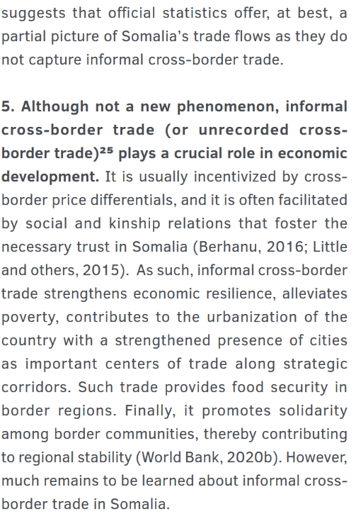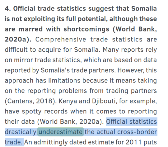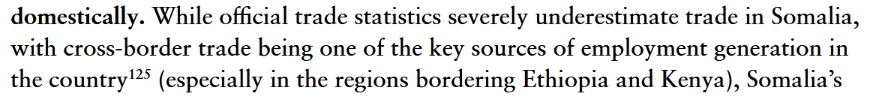 When I checked the footnotes to see what it was referring to, I found that a separate study had actually found Somalia’s cross-border trade to be 2–5 times higher than reported, and estimated it employs 10–30% of the total population.