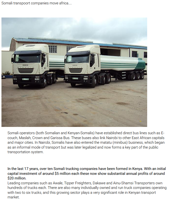 Somalis practically dominate logistics across the region, running some of the largest enterprises , Somalia has essentially become a key trade hub