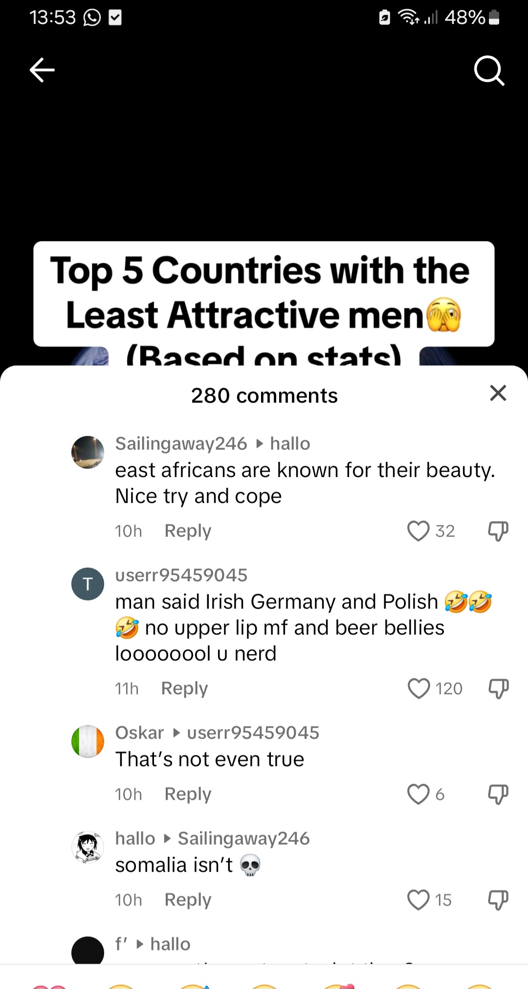 Send me the linkHere we are minding our business and ofcourse ajanabis are upset that Somalia wasn't included in the "least attractive people" lool