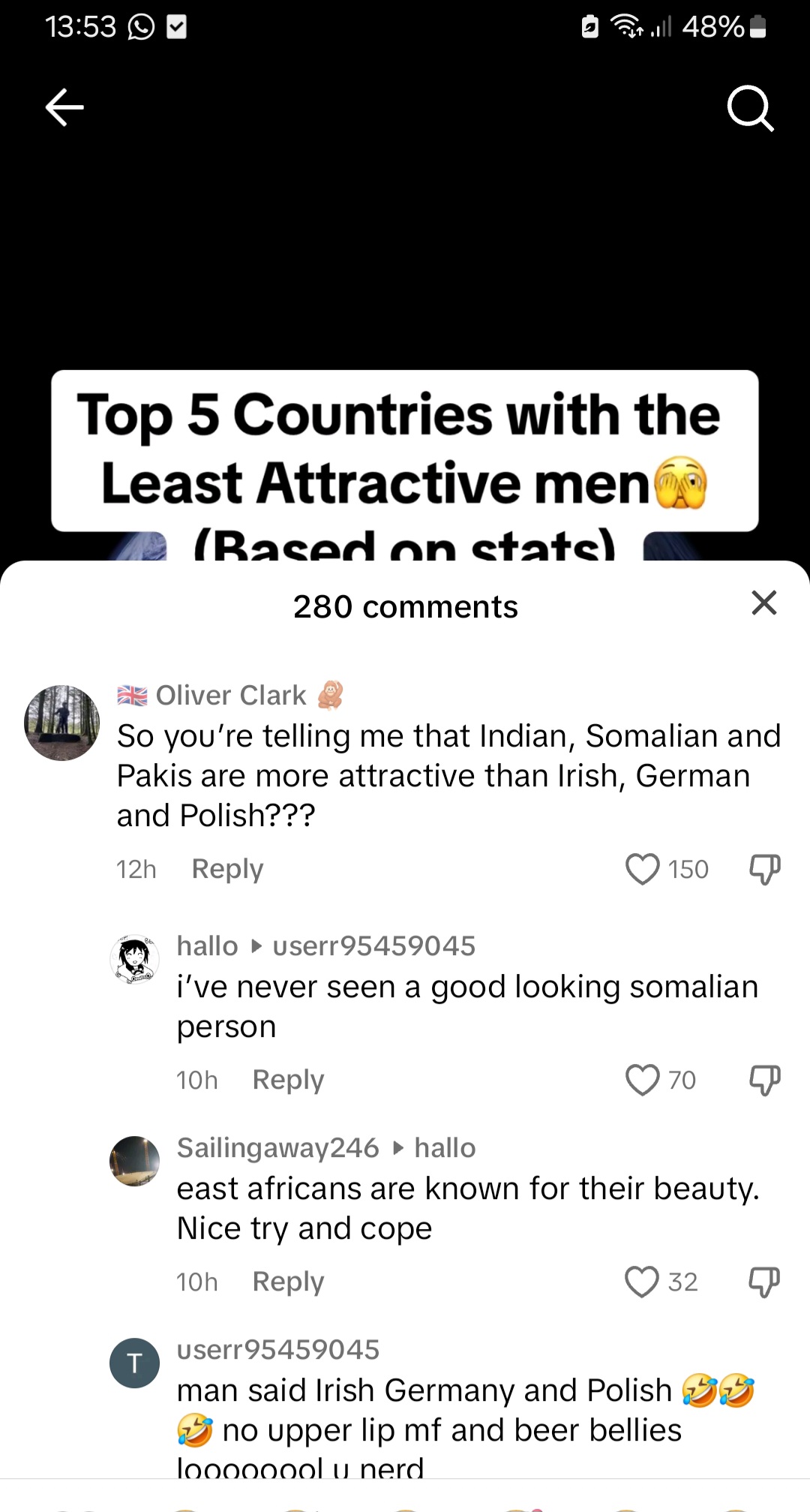Lmao at the British guy as if Europe doesn’t rate the UK as the least attractive EuropeansHere we are minding our business and ofcourse ajanabis are upset that Somalia wasn't included in the "least attractive people" lool