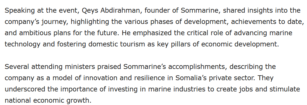 They’re not only building fishing vessels but also equipment, processing factories, cold storage chains along the coast, and supporting infrastructure like jetties for improved connectivity. New fish markets are being established as well. And with the Somali Navy making a return to combat illegal fishing, the long-term capital gains for this sector could be exponential.