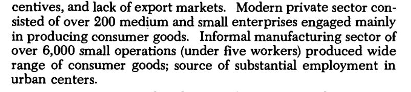 Before the civil war, Somalis operated thousands of manufacturing firms, producing diverse consumer goods and owning hundreds of private factories, besides the large state owned entreprises. In urban centers, Somalis have historically been very industrial , a legacy that continues today: