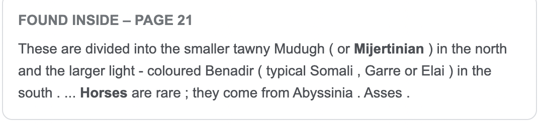 There's also the Suleiman horsesThere are different horse breeds in Somalia. One of them is named after Majeerteen.