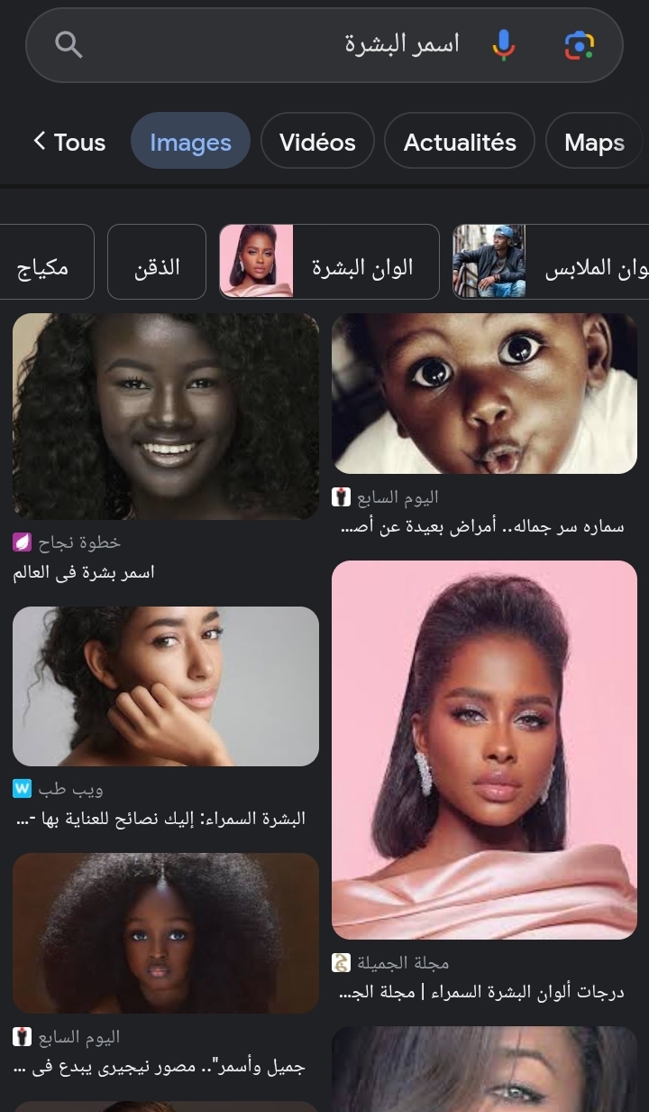 Their skin was distinct from Black people (aswad) and White people (Hmra).