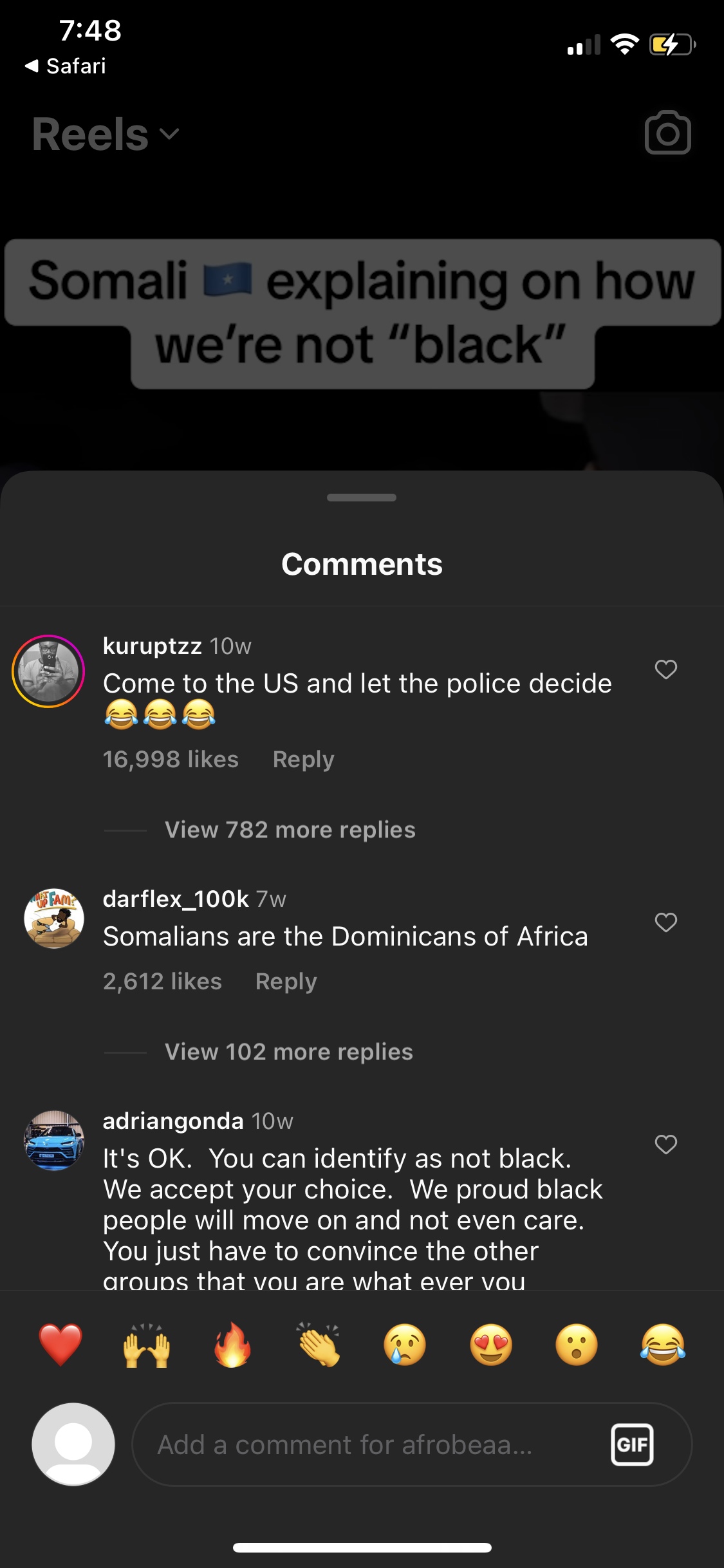 Somalis getting cooked for not identifying as black