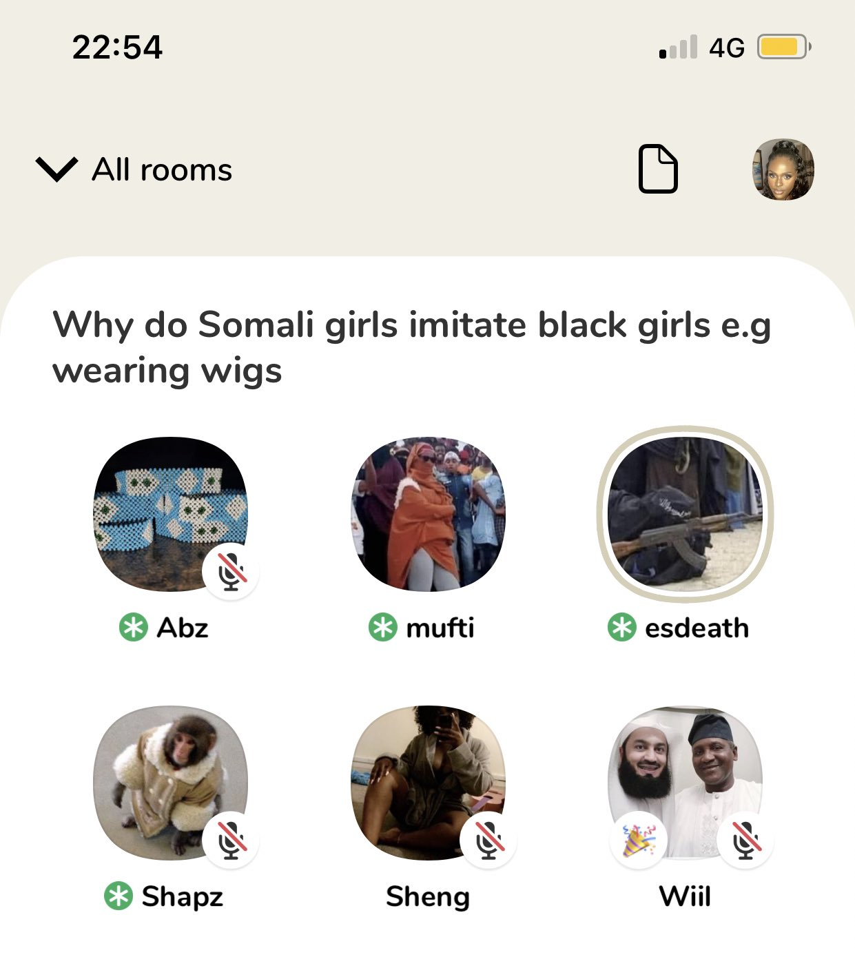 This is couple days after the number 1 trending room was ‘Why do Black men prefer East African women over their own’ and the convi was spearheaded by Somali guys.