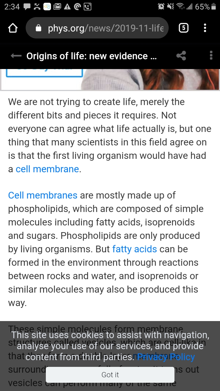 "Cell membranes are mostly made up of phospholipids, which are composed of simple molecules including fatty acids, isoprenoids and sugars"