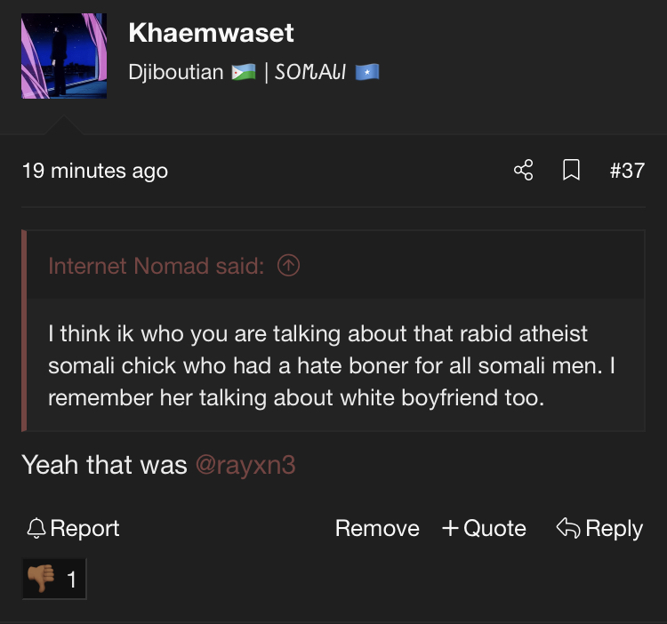 For me to make a positive thread about somali men, they have to actually contribute something positive to society first.I would love to see how you have added to the conversation @rayxn3 besides from crying about Somali men what have you tossed into the proverbial communal fire.