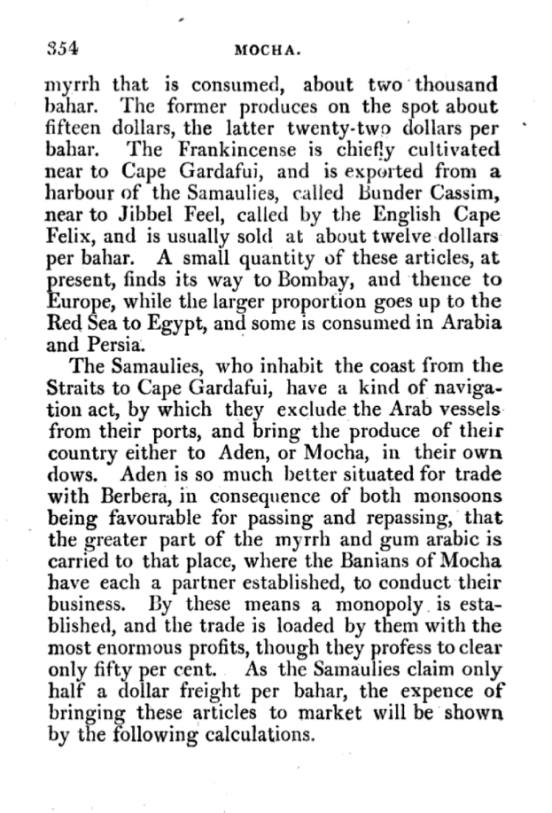 The previous source talking about Majeerteens, as you can see, also posits that the Cusmaan Maxamuud in particular begin to really venture to far away ports like in Tanzania around the mid 1800s onward but we know from a Portuguese source I've shared in the previous page of this thread along with others like one I shared above that Somalis are at the very least confirmed to have sailed to the Arabian Peninsula decades before this like the start of the 1800s and by 1815 where in the latter case the source is speaking specifically of people from around Cape Guardafui (MJs).