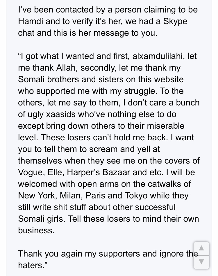 Im confused why are y’all fighting?By the time I’m done with hamdia she will volunteer to return back to her dadaab refugee camp.