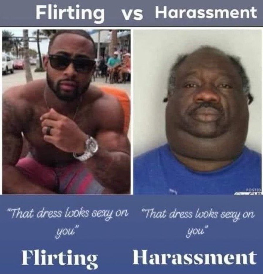 The line between flirting and harassment is how good you look.