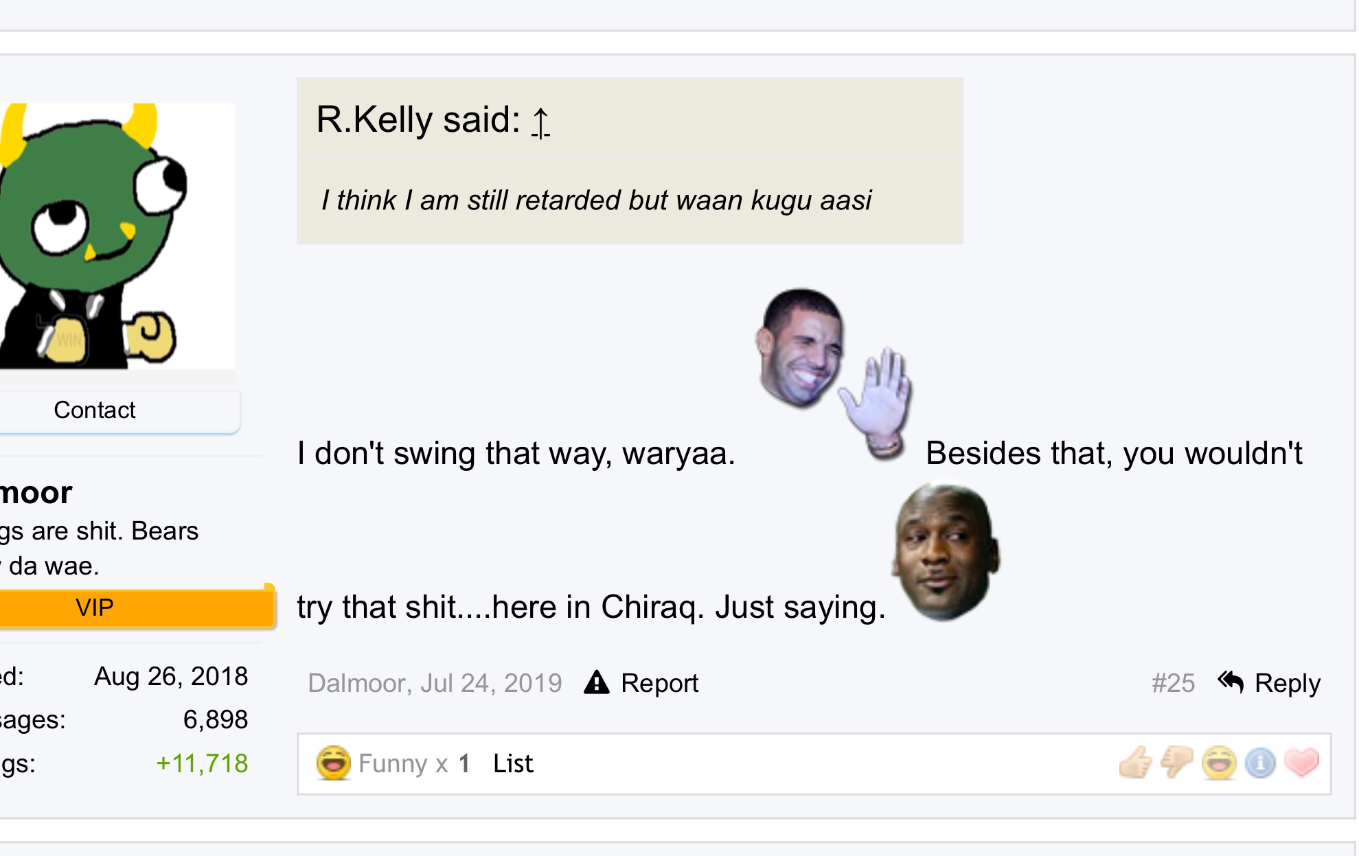 Stop lying. We already know that you’re a Chiraq Farax. Just accept your fate.