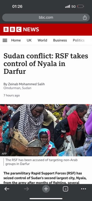 The RSF also controls the 2nd largest city of Sudan Nyala putting the Sudanese army in a very much weaker negotiating position as vitally important productive cities have been taken