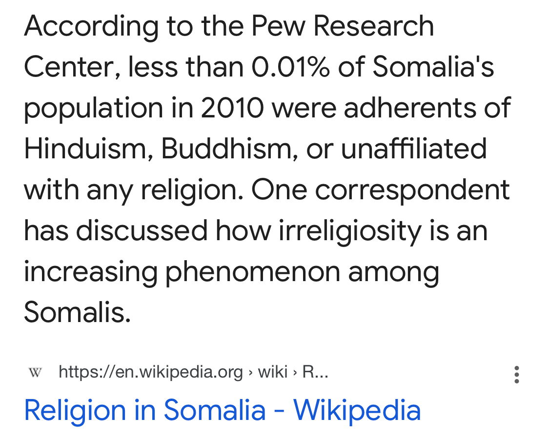 Yeah they are extinct now but during their height 50% of Somalis were Buddhist and their was shaolin temples all across Somalia.