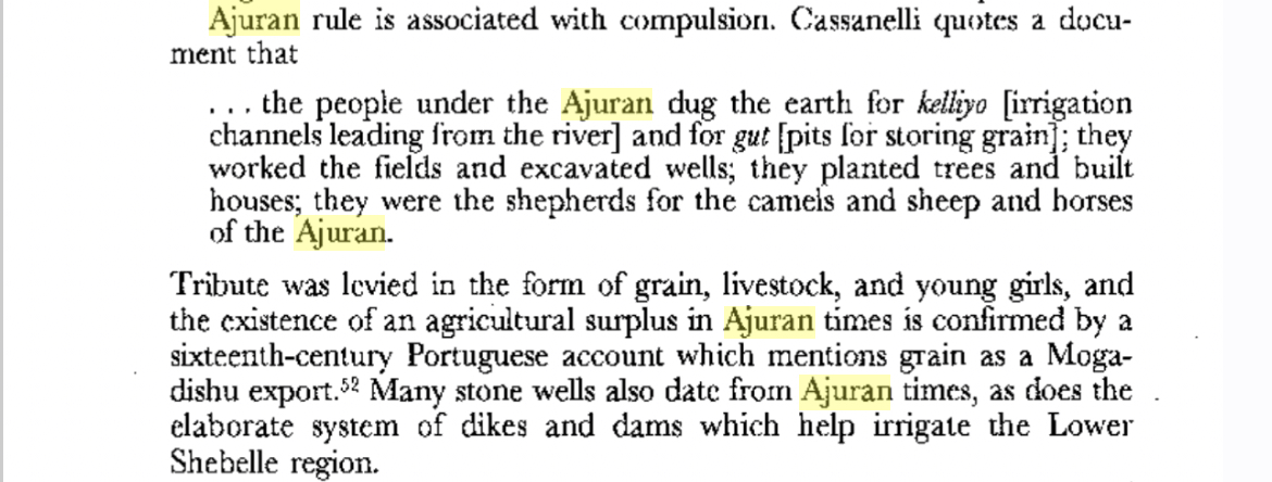 So where is the archeological evidence of the Ajuuran control of Juba and Shabelle? As far as I’m concerned, there’s no history of urbanisation in Southern Somalia before the 19th century excluding the coast.