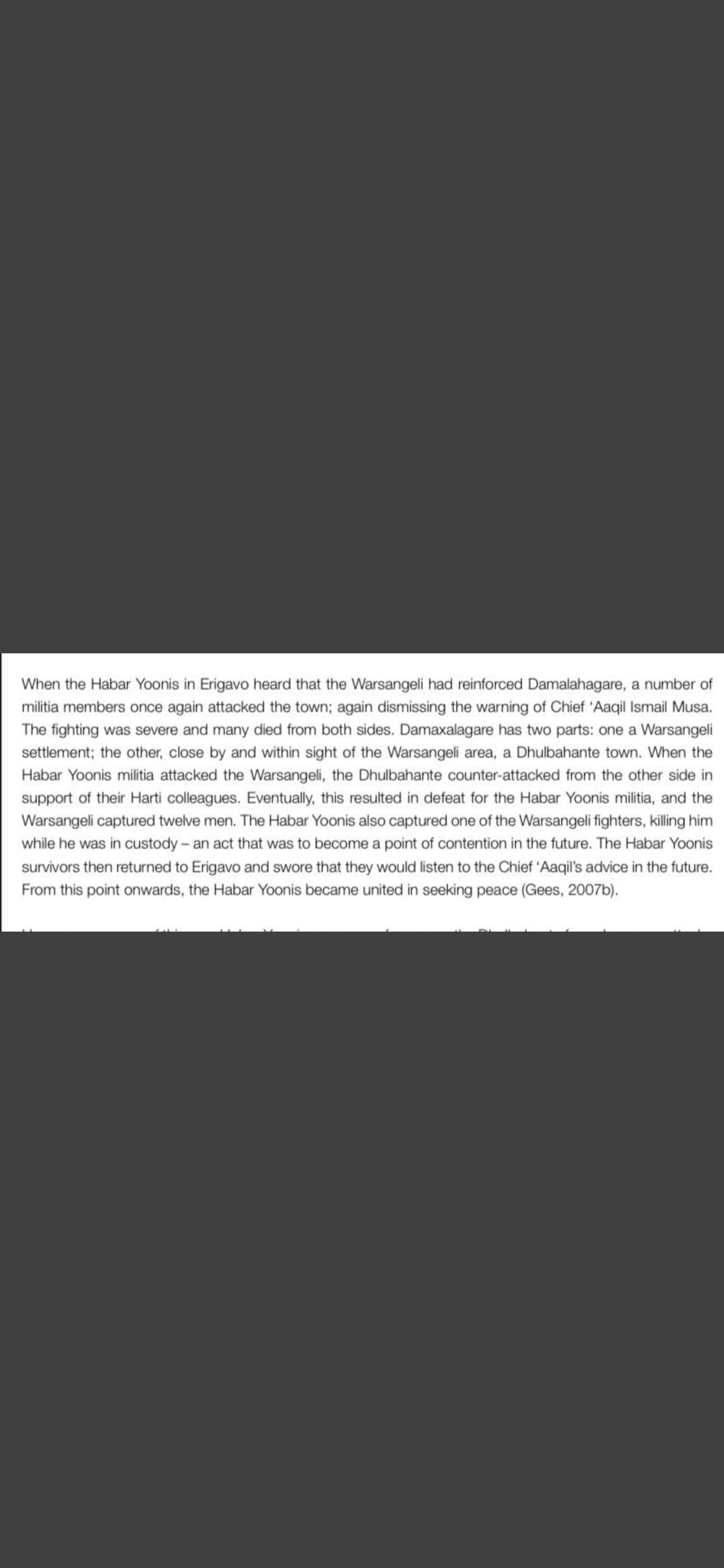 "this was in spite of the fact that the Warsangeli delegates to the Burao conference were actually informed during the conference that their towns were under attack by the Sanaag SNM"![]()