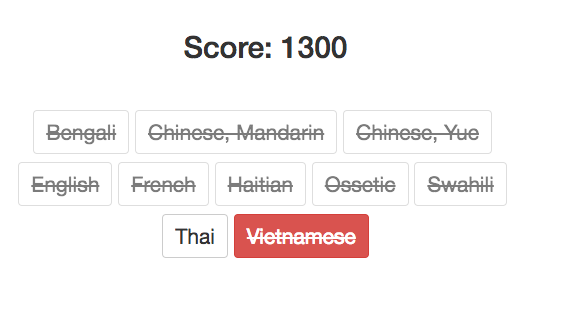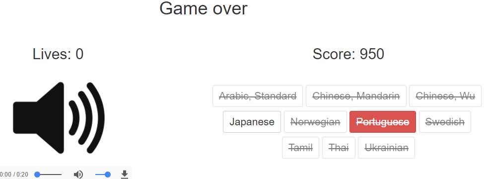 You got 1300The east Asian languages were my downfall. How am I meant to hear the difference between Mandarin, Wu and Yue Chinese or Thai and Vietnamese