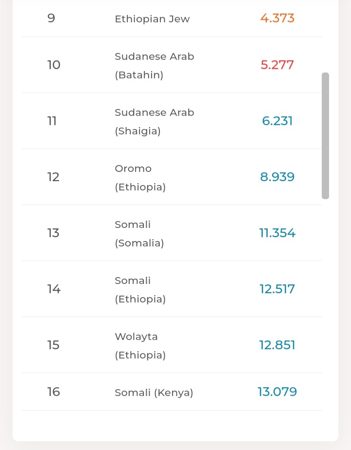 There is why u hit closet to habesha then other Somalis simply due to Somalis having lower eursian.